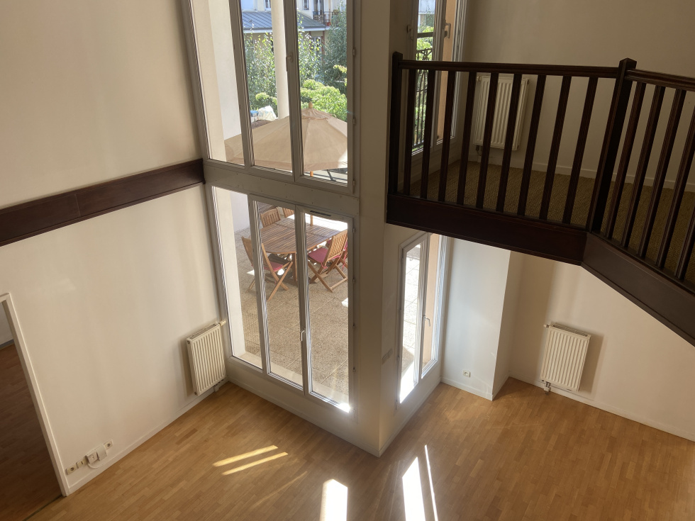 TRES BEAU DUPLEX de 122m2 AVEC TERRASSE de 22m2 orienté plein ouest à Courbevoie dans le quartier du Fauboug de l'Arche dans une très belle résidence de standing, sécurisée et arborée, dans un environnement familial au pied des écoles, commerces, des transports et à 10 minutes de l'esplanade de La Défense. Ce bien comprend au premier niveau : une entrée, un WC, un magnifique séjour cathédrale de 45m2 donnant sur une belle terrasse de 22m2, cusinie séparée donnant également sur la terrasse, une chambre avec sa salle d'eau. Au 2eme niveau : une belle mezzanine pouvant acceuillir un coin bureau, 2 chambres avec rangements dont une avec sa salle d'eau, une salle de bains et un WC séparé. Un box et une place de parking complètent ce bien