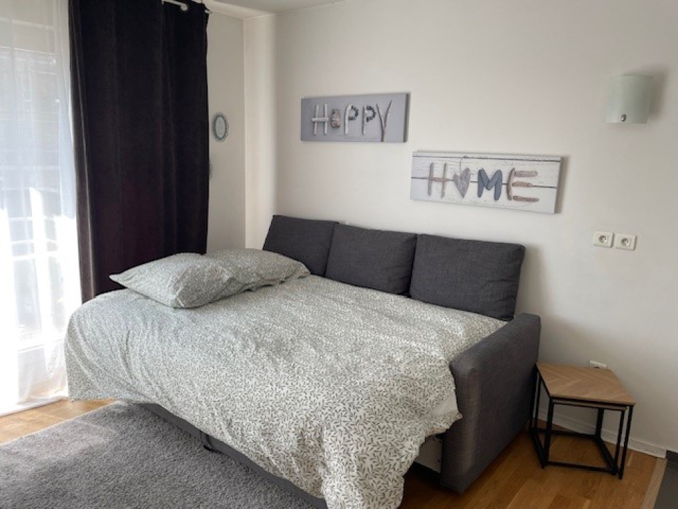 Faubourg de l'Arche, avenue Léonard de Vinci , au plus près des transports et des commerces, beau studio MEUBLE de 26,88 m2 en étage élevé, entrée avec placard, salle de bains avec wc, séjour avec cuisine américaine équipée, balcon exposé plein sud. Eau et chauffage collectifs. Disponible le 2 mars.