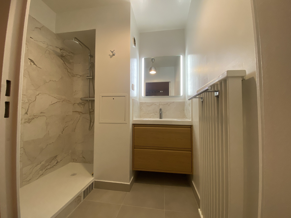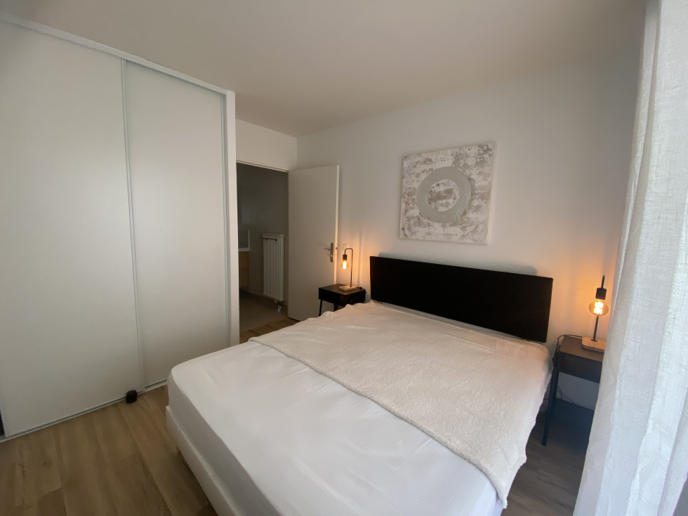 Faubourg de l'Arche, au coeur du quartier, immeuble avec gardien à l'entrée du parc du Millénaire. Très beau 2 pièces MEUBLE de 39m2 entièrement refait à neuf ainsi que son équipement de grande qualité. Plan optimal sans perte de place: entrée, wc indépendant, séjour avec cuisine ouverte équipée, chambre avec placard, salle d'eau avec grande douche, balcon 4 m2. Chauffage et eau collectifs. Disponible de suite. Honoraires en résidence principale 590€, honoraires en code civil (bail socété ou résidence secondaire) 1495€ hors taxes.