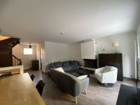Faubourg de l'Arche, à 2 mn du tram T2 Les Fauvelles, maison familiale non mitoyenne de 104m2 de 1998 MEUBLEE , au calme au fond d'une copropriété, repeinte à neuf. Au rez de chaussée: grande...